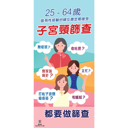 子宮頸癌簡介 子宮頸癌是香港女性中常見的癌症。大部分子宮頸癌是由於持續感染高危(或高風險類型)的人類乳頭瘤病毒(又稱 HPV)所致。 HPV 感染一般出現在曾經有性生活的人士。大部分有 HPV 感染的人士沒有任何症狀,而且可能自行排除病毒。然而,有部分女性卻因持續感染高風險類型的 HPV 而導致子宮頸細胞出現變異,甚至發展成癌症。 重要提醒: 25-64 歲曾有性經驗的婦女應定期接受子宮頸篩查,這是預防子宮頸癌的有效方法。 引致 HPV 感染或子宮頸癌的風險因素 以下是常見的風險因素: 有多個性伴侶 過早開始有性行為 同時感染性病 吸煙 免疫能力減弱 持續感染高危性類型 HPV 多次生育或第一次懷孕時年齡較輕 吸煙會增加子宮頸癌的風險,請盡量避免。 預防子宮頸癌的方法 定期接受子宮頸篩查 是已獲證實的有效預防方法。子宮頸篩查是一種快速而簡單的測試,能及早發現異常細胞。 癌症預防及普查專家工作小組篩查建議: 25 至 29 歲 而曾有性經驗的婦女,若連續兩年的子宮頸細胞檢驗結果正常,其後可每三年接受一次篩查。 30 至 64 歲 而曾有性經驗的婦女,應接受以下任何一種方案: (i) 若連續兩年的子宮頸細胞檢驗結果正常,以後可每三年接受一次篩查;或 (ii) 每五年接受一次 HPV 檢測;或 (iii) 每五年接受一次 HPV 檢測與子宮頸細胞檢驗的合併檢測。 65 歲或以上 而曾有性經驗的婦女: ► 如在過去 10 年的常規篩查均得出正常結果,可停止接受篩查。 ► 如從未接受子宮頸篩查,應接受篩查。 25 至